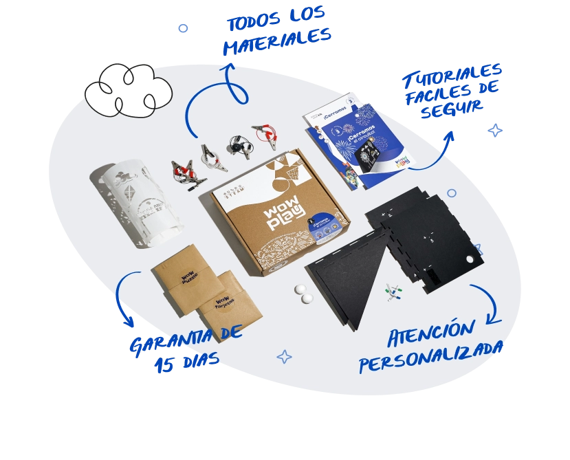 ¡No necesitas nada más! En cada kit viene todo lo necesario para completar el proyecto, incluso tijeras si son necesarias. Nos encargamos de que no tengas que preocuparte por ningún material adicional.